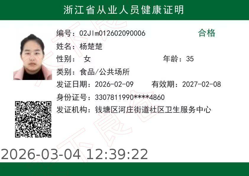 [健康证]新围小学学生--杨楚楚
